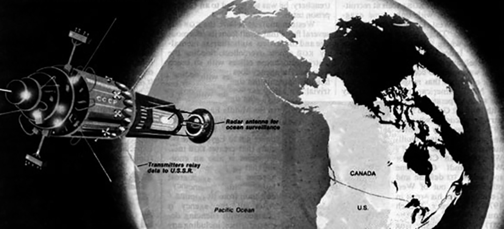 Artists impression of a Soviet Kosmos surveillance satellite over the North American continent 1978. Credit: Time Magazine