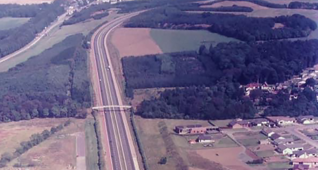 M8 Motorway next to Dechmont Woods (top right) 1982. Credit: Unknown