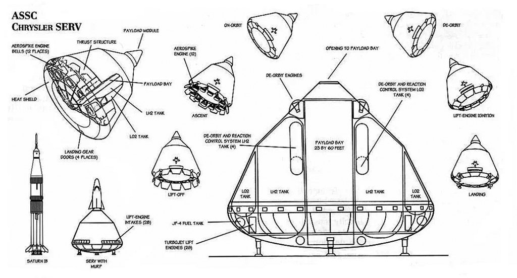Due to the classified nature of NASA’s STS program, no official documentation exists that can help explain NASA’s reasoning for the cancellation of Chrysler’s SERV, therefore leaving it to speculation only. The management at NASA had concluded early on that a spaceplane was the direction they wished to proceed and their astronauts were not keen on an unmanned space truck that could fly cargo only missions. NASA’s engineers were also concerned that a number of technologies required further development to make the SERV a success.