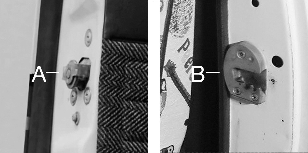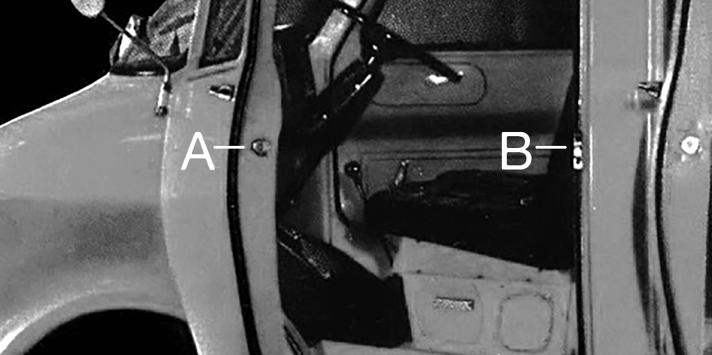 Bedford CF pick-up truck door latch marked A and B.